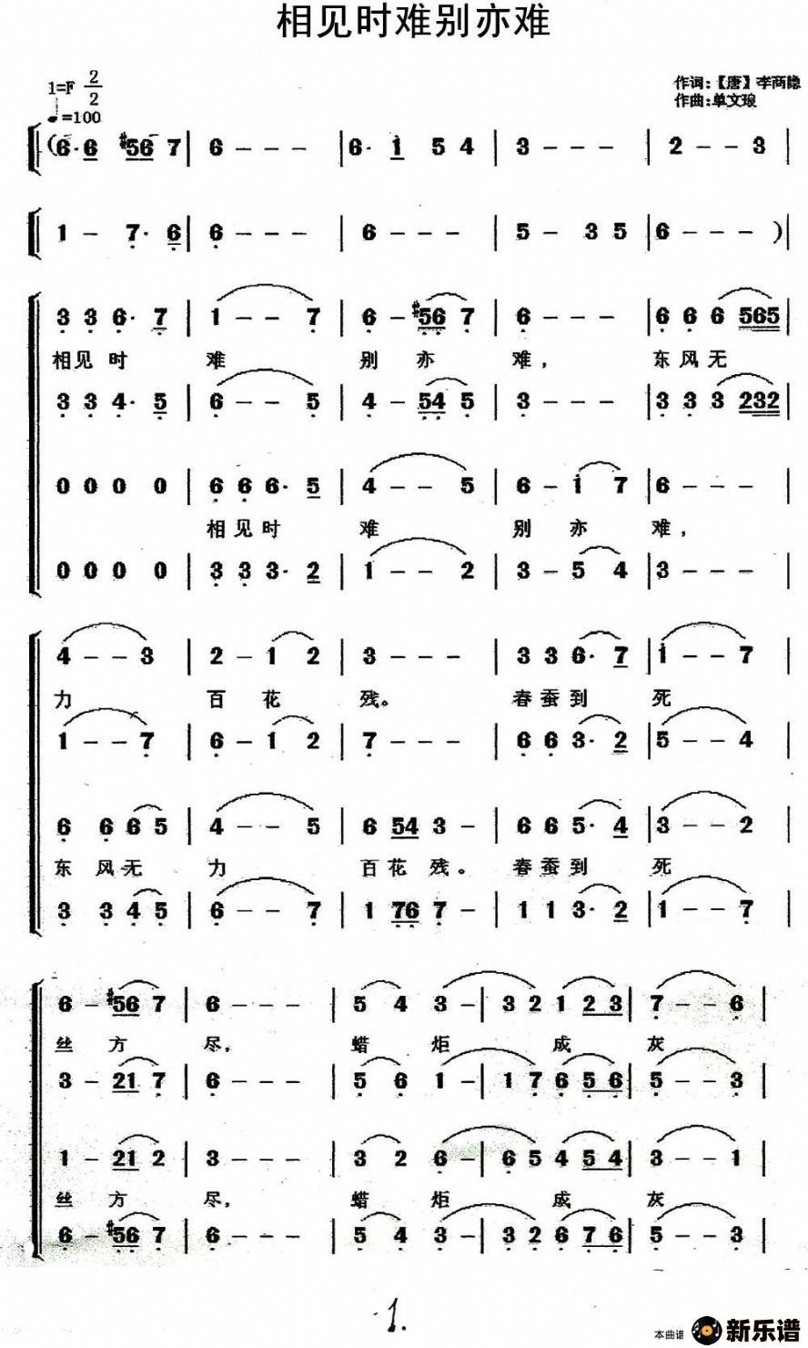 演唱的相见时难别亦难歌词,相见时难别亦难最新曲谱.