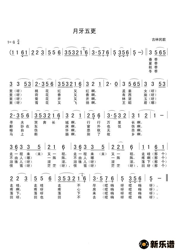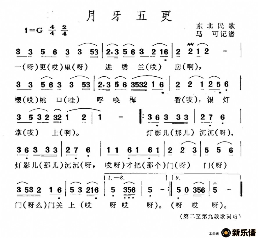 演唱的月牙五更歌词,月牙五更最新曲谱.