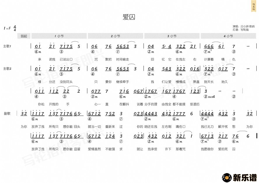 > 爱囚最新曲谱