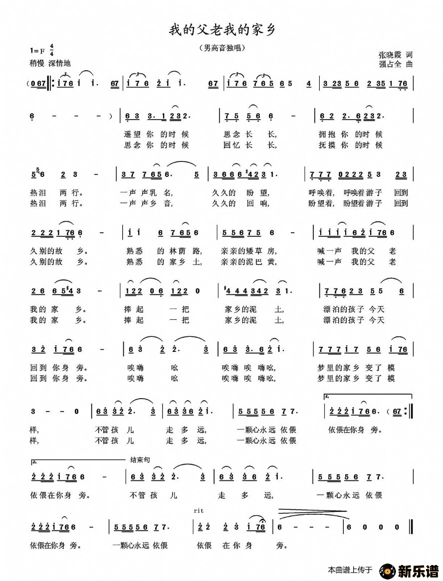 演唱的我的父老我的家乡歌词,我的父老我的家乡最新曲谱.