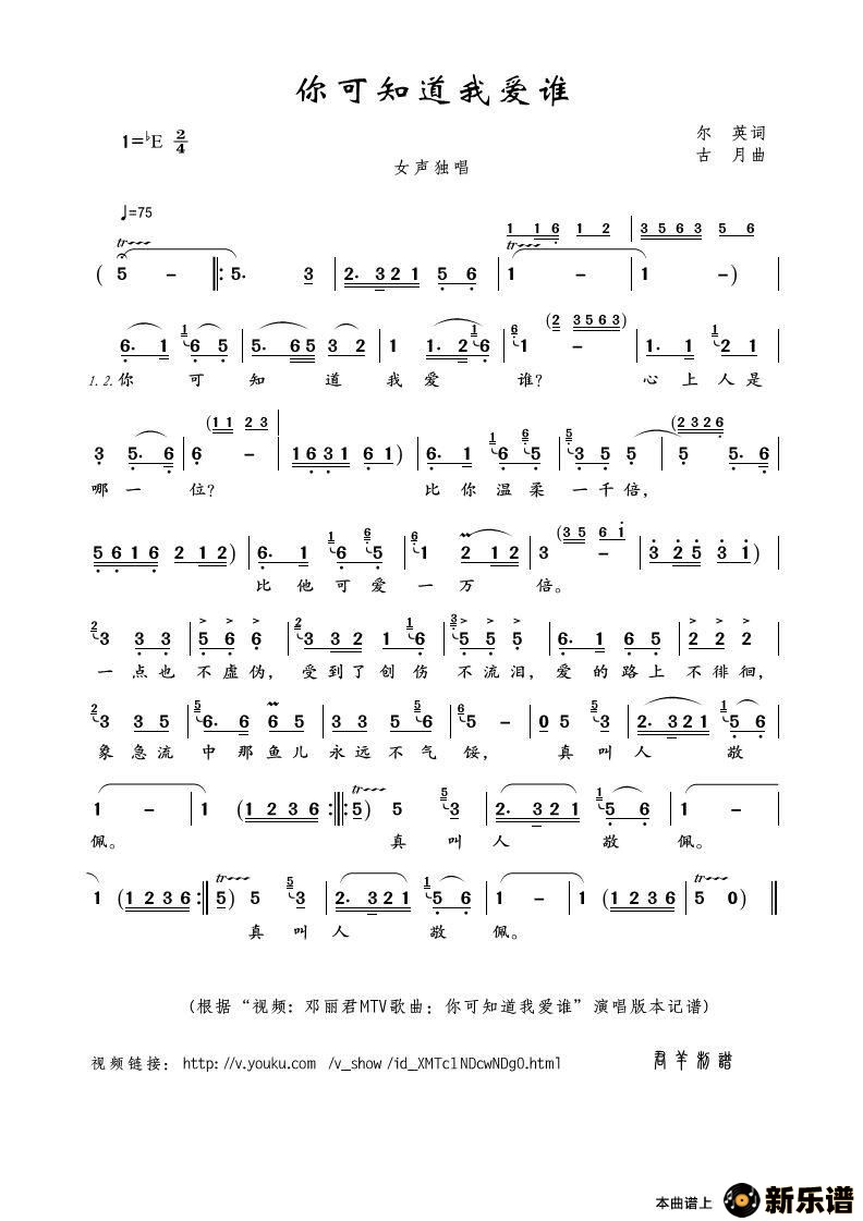 《你可知道我爱谁》最新曲谱 邓丽君-君羊制谱