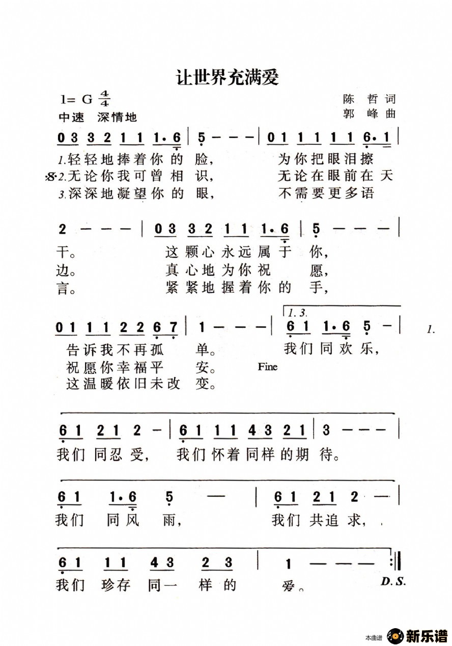 演唱的让世界充满爱歌词,让世界充满爱最新曲谱.