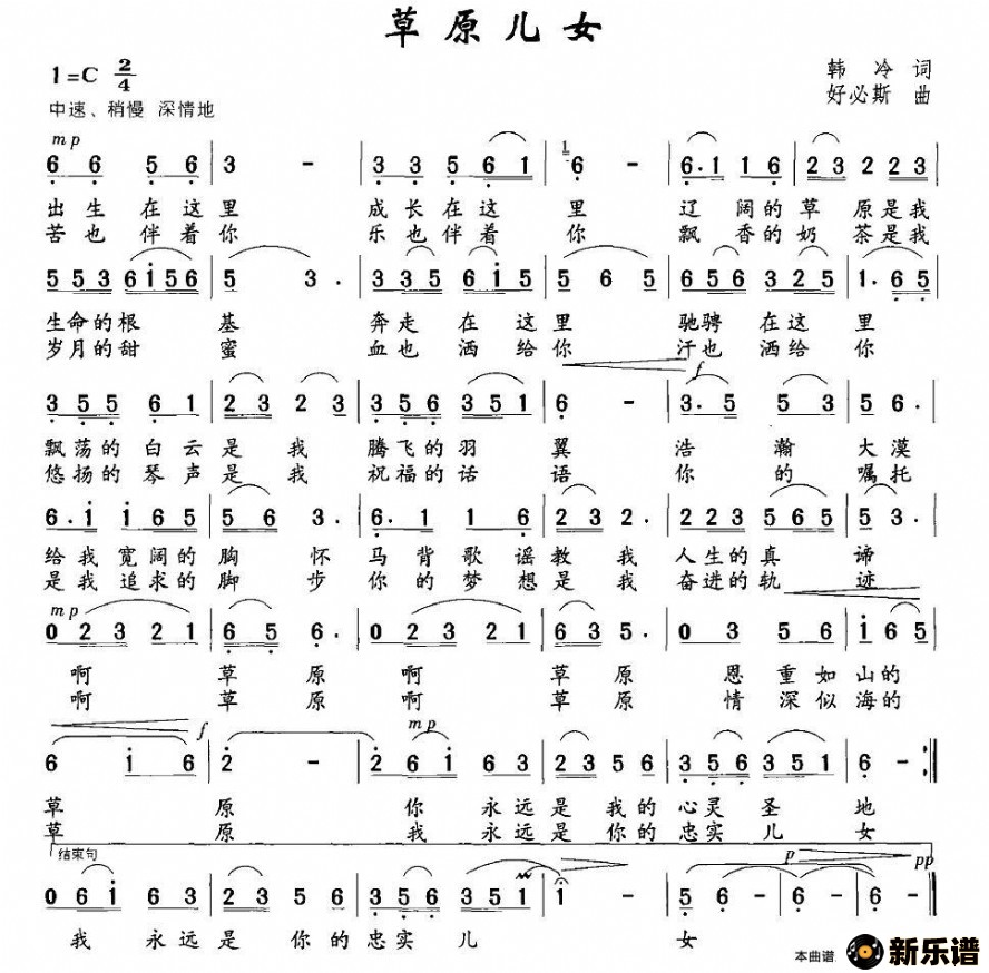 演唱的草原儿女歌词,草原儿女最新曲谱.