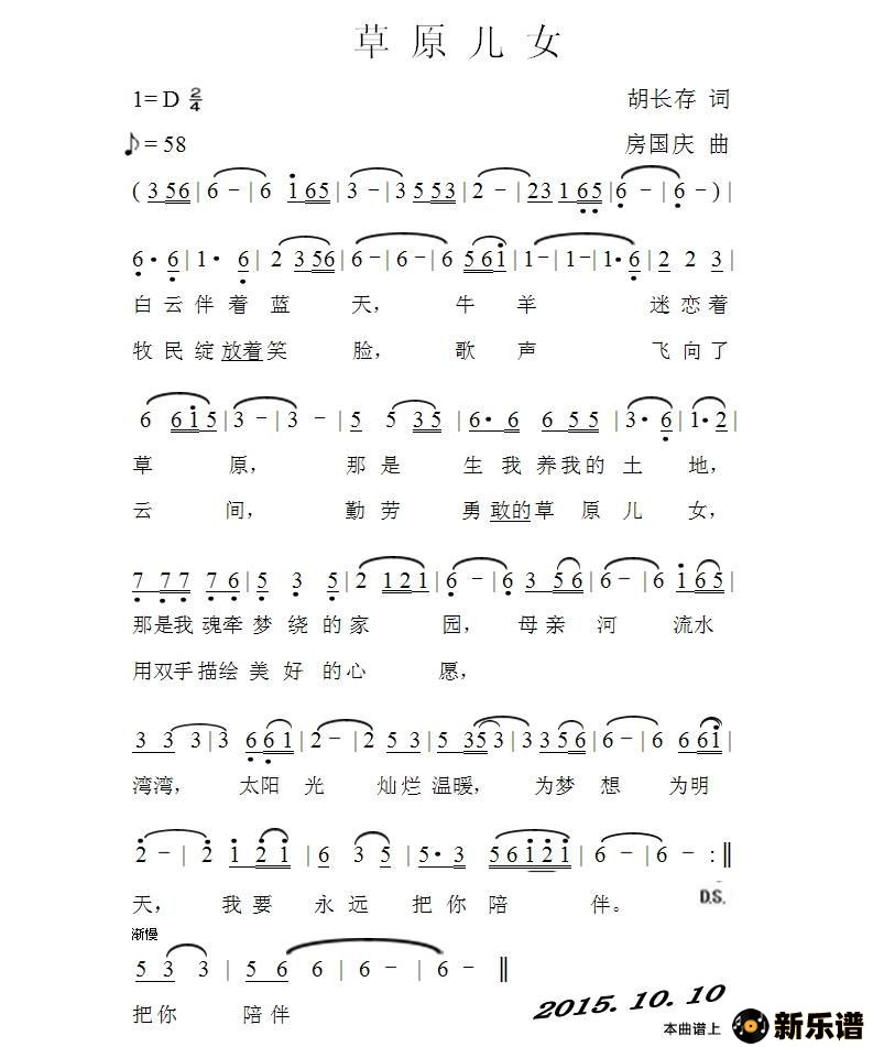 演唱的草原儿女歌词,草原儿女最新曲谱.