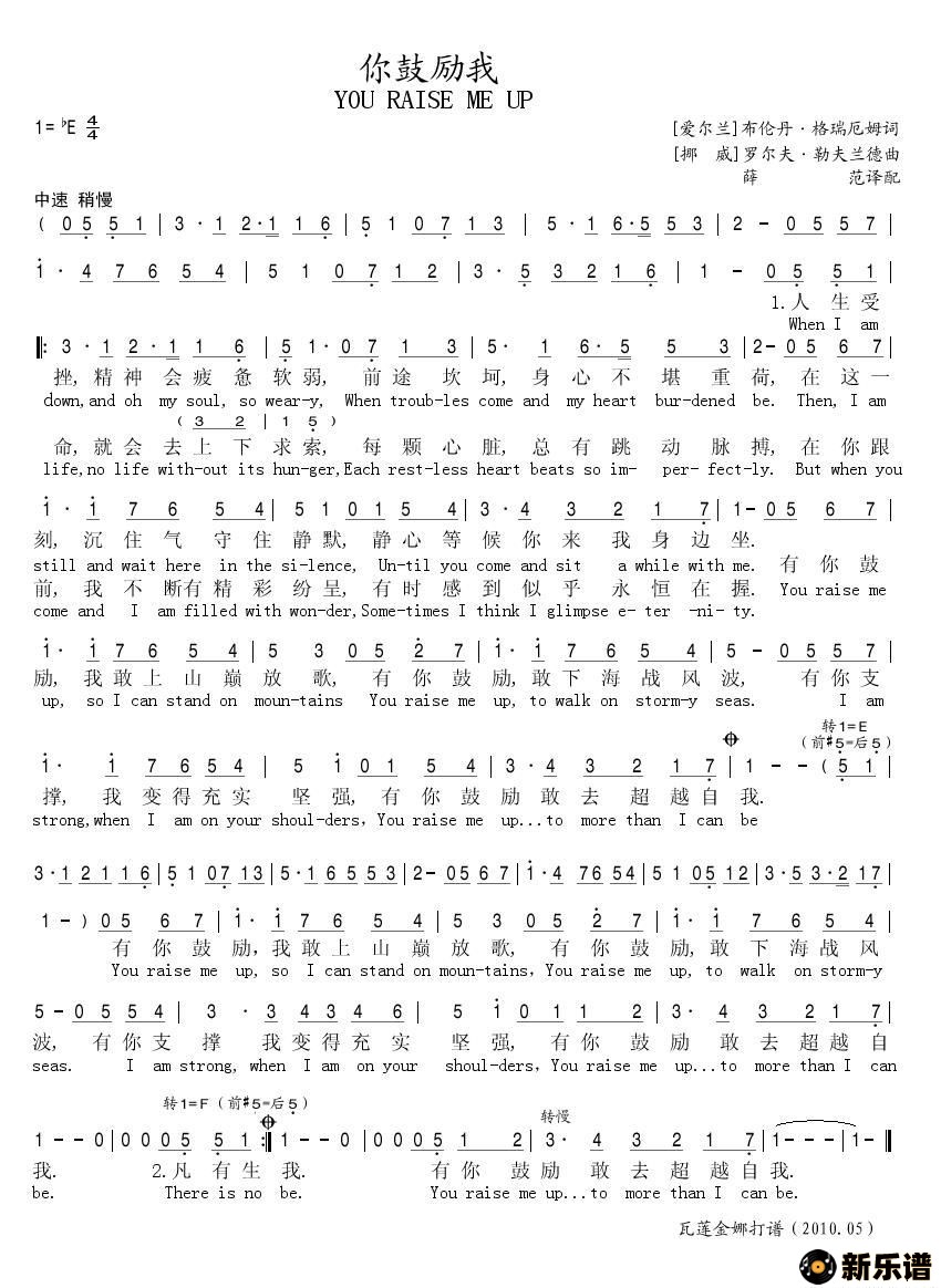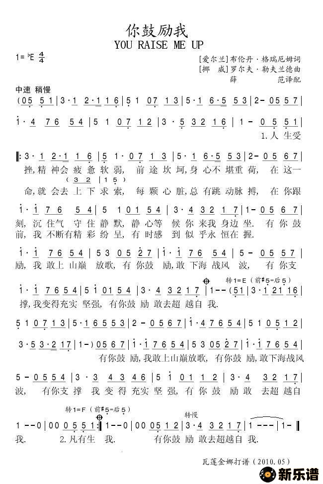 你鼓励我最新曲谱