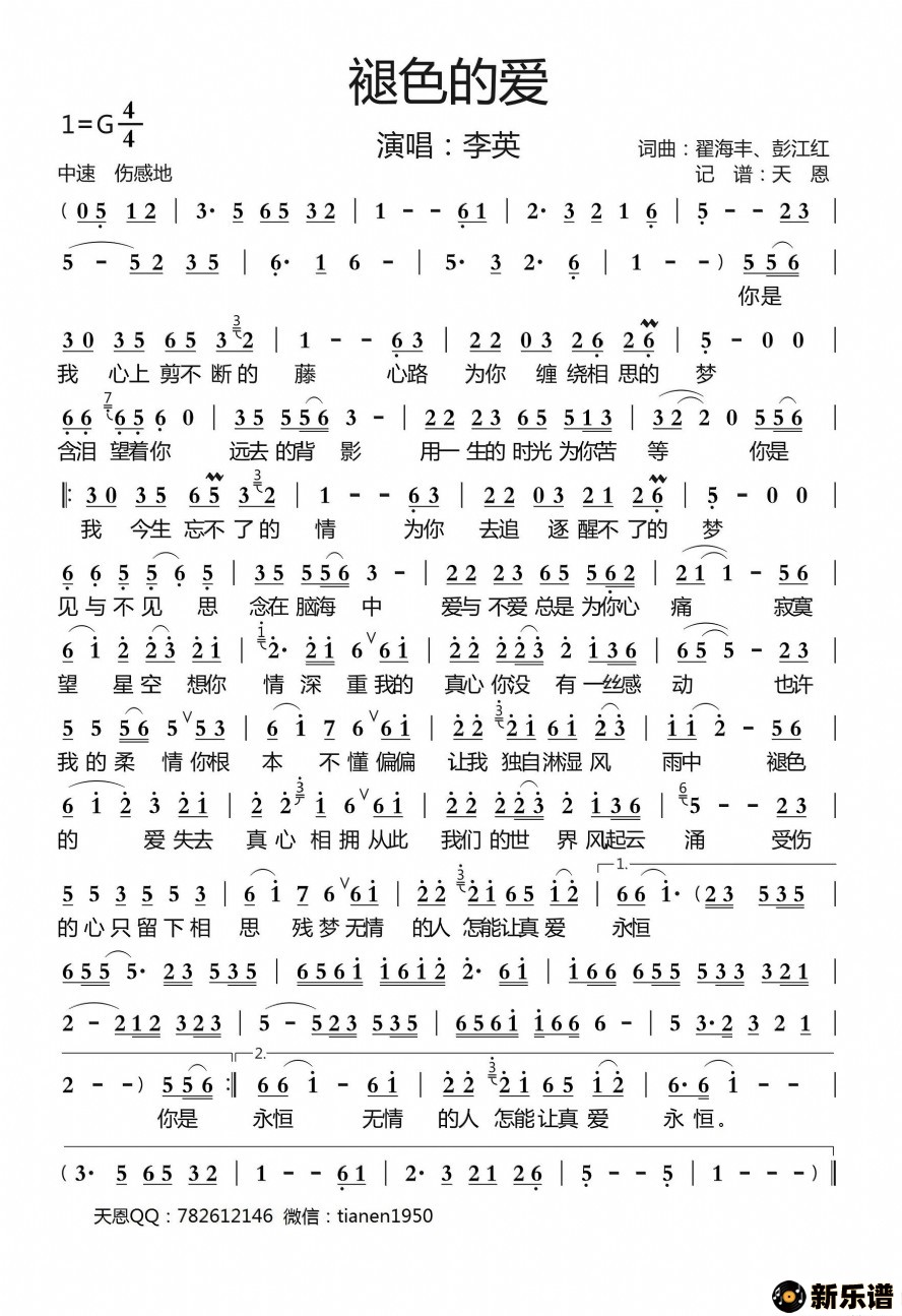 《褪色的爱》最新曲谱 李英-天恩制谱