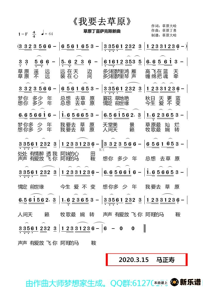 草原大哈演唱的我要去草原歌词,我要去草原最新曲谱.