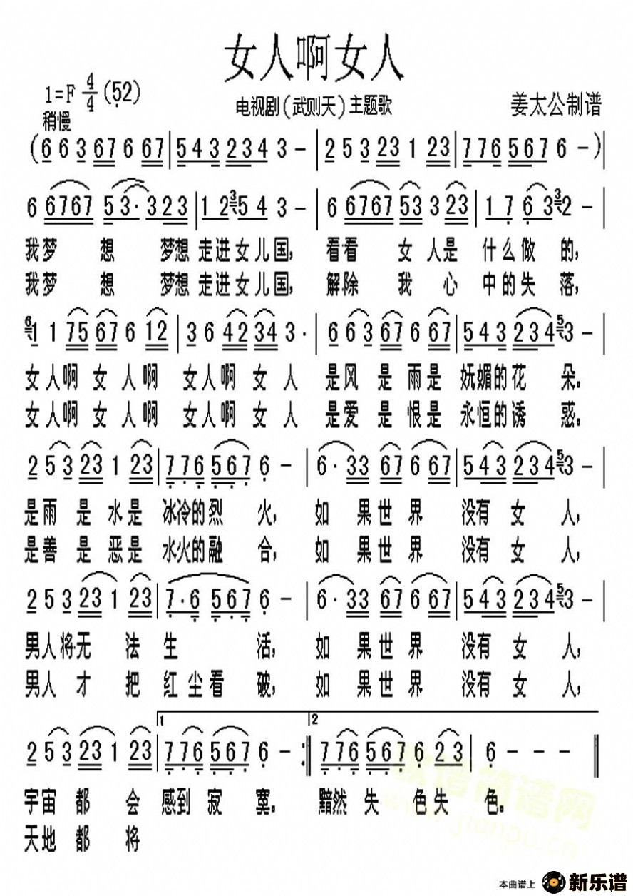 演唱的女人啊女人(电视剧《武则天》主题歌)歌词,女人啊女人(电视剧《武则天》主题歌)最新曲谱.