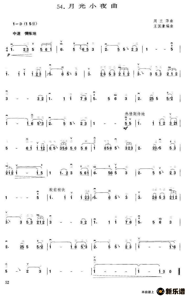 演唱的月光小夜曲歌词,月光小夜曲最新曲谱.