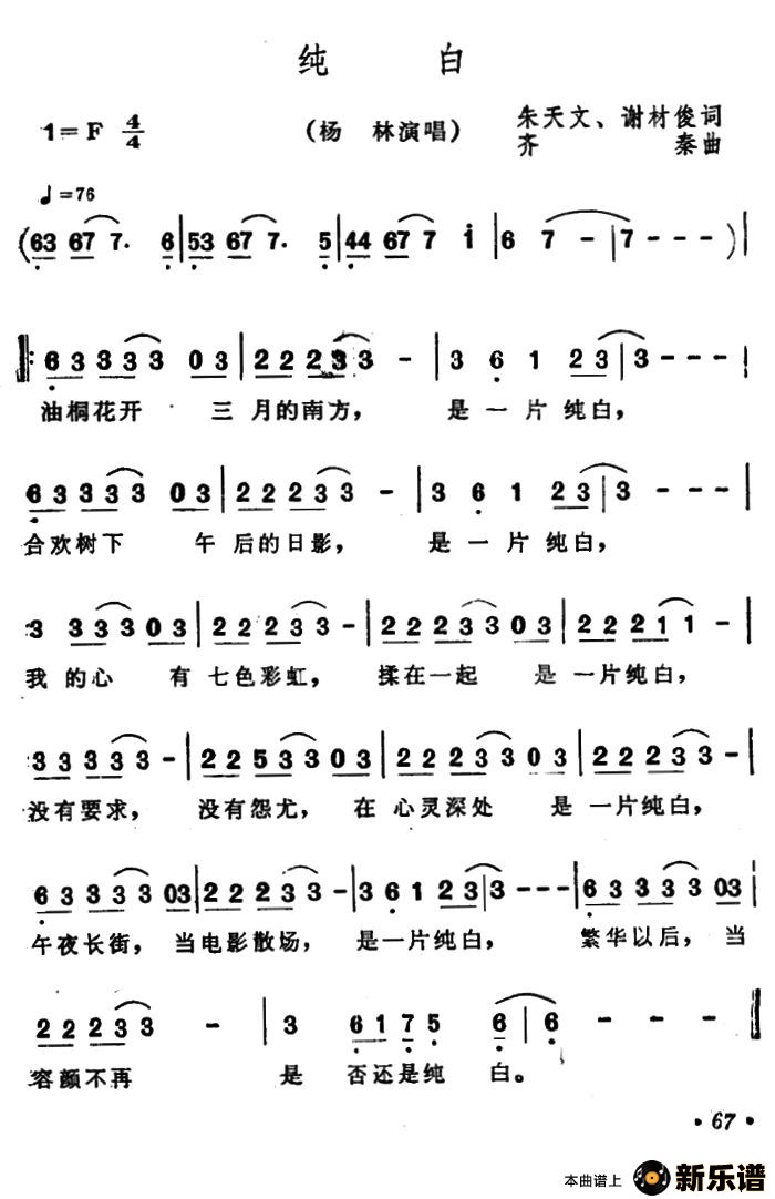 杨林演唱的纯白歌词,纯白最新曲谱.