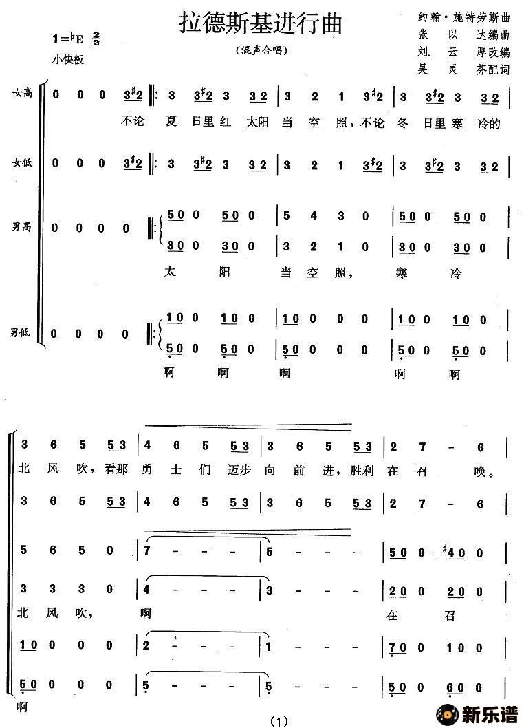 演唱的【奥】拉德斯基进行曲歌词,【奥】拉德斯基进行曲最新曲谱.