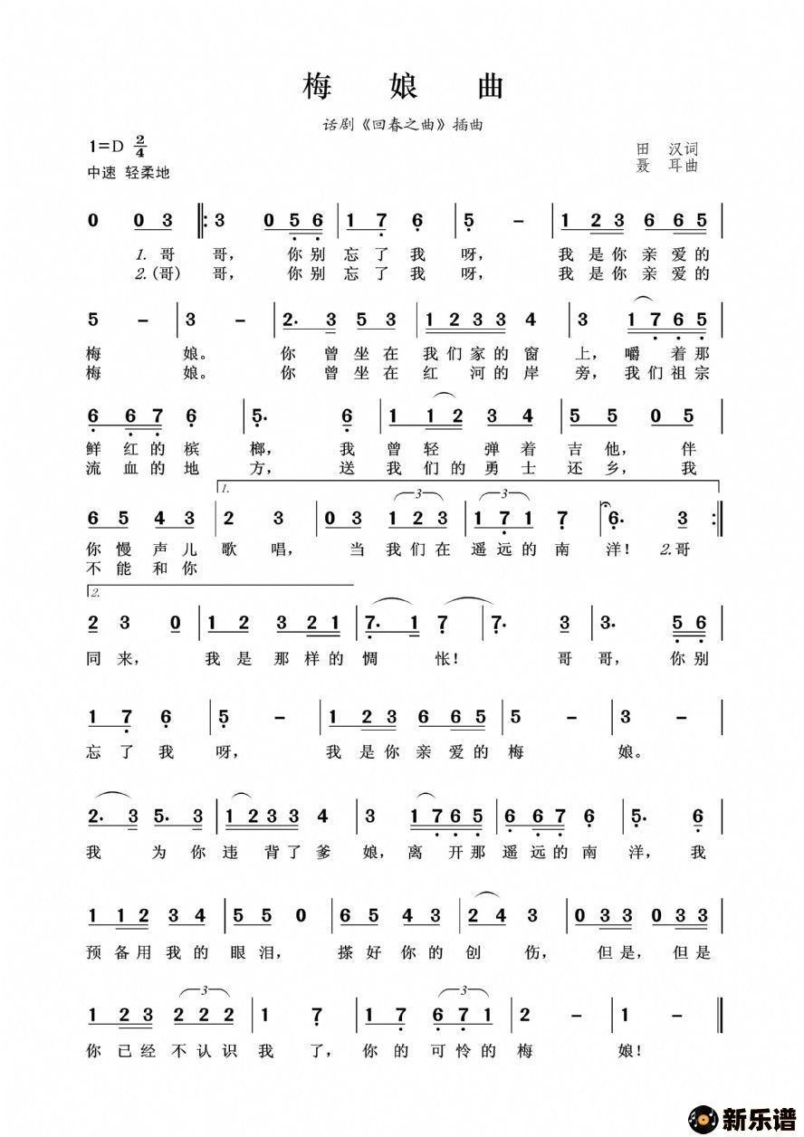 殷秀梅演唱的梅娘曲歌词,梅娘曲最新曲谱.