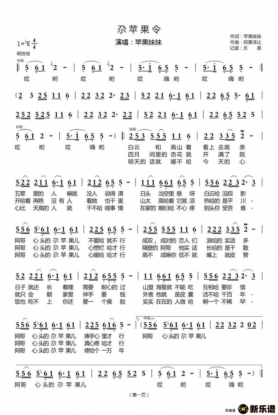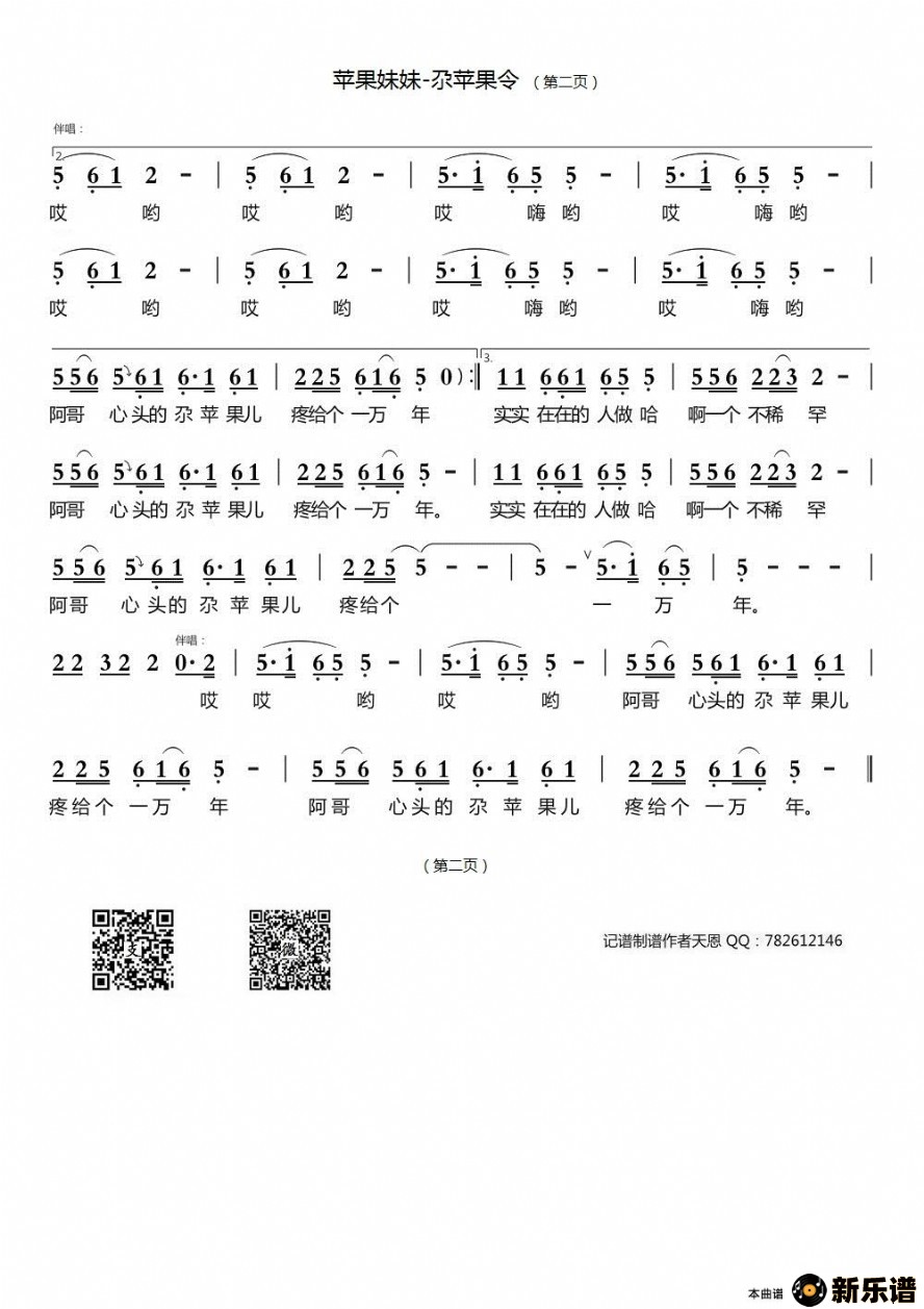 《尕苹果令》最新曲谱 苹果妹妹-天恩制谱