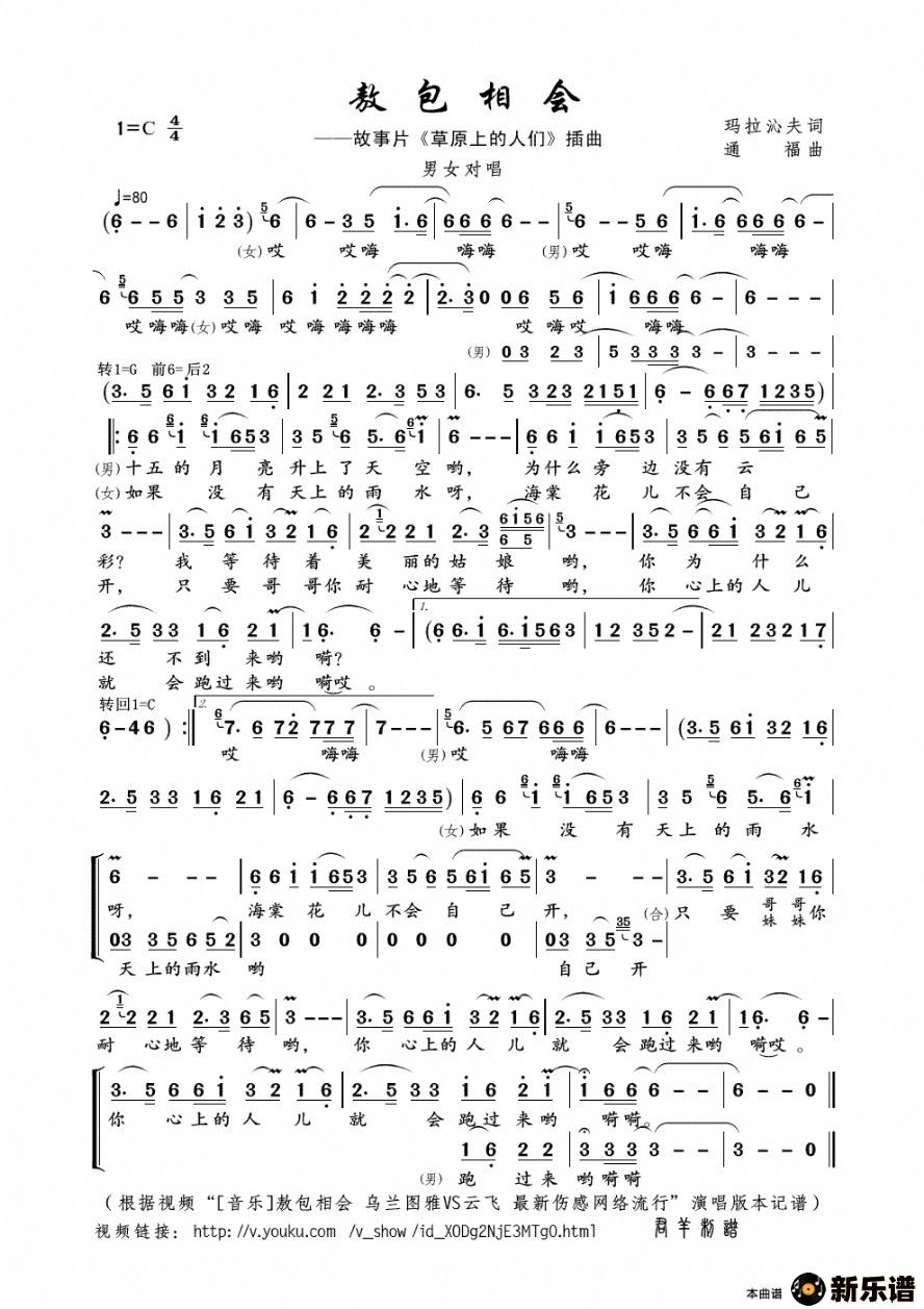 《敖包相会》最新曲谱 乌兰图雅、云飞-君羊制谱