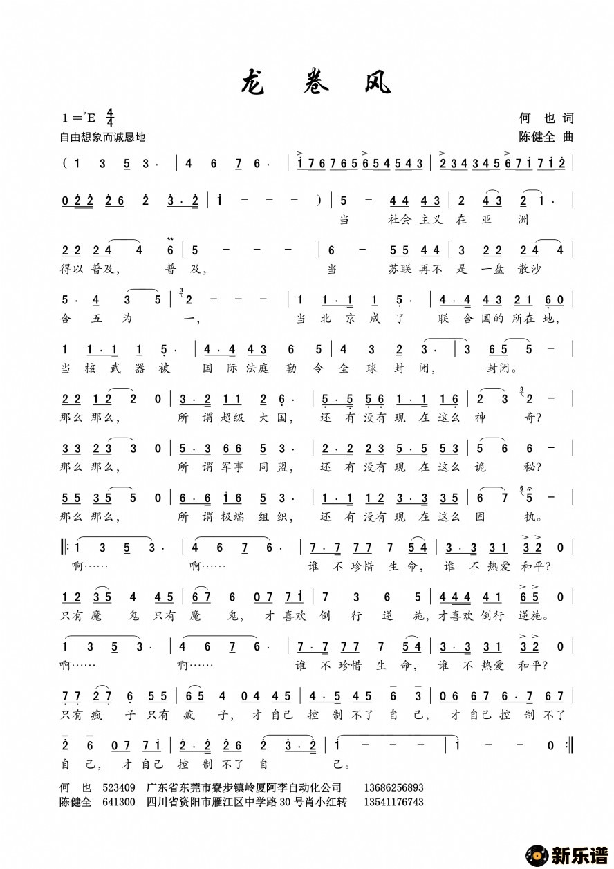 演唱的龙卷风歌词,龙卷风最新曲谱.