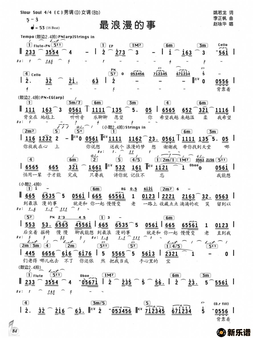 赵咏华演唱的最浪漫的事歌词,最浪漫的事最新曲谱.