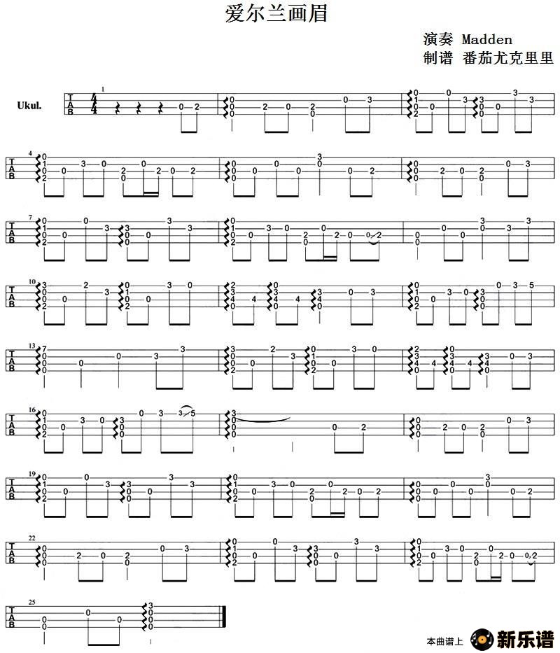 作曲:番茄尤克里里制谱(尤克里里指弹谱)