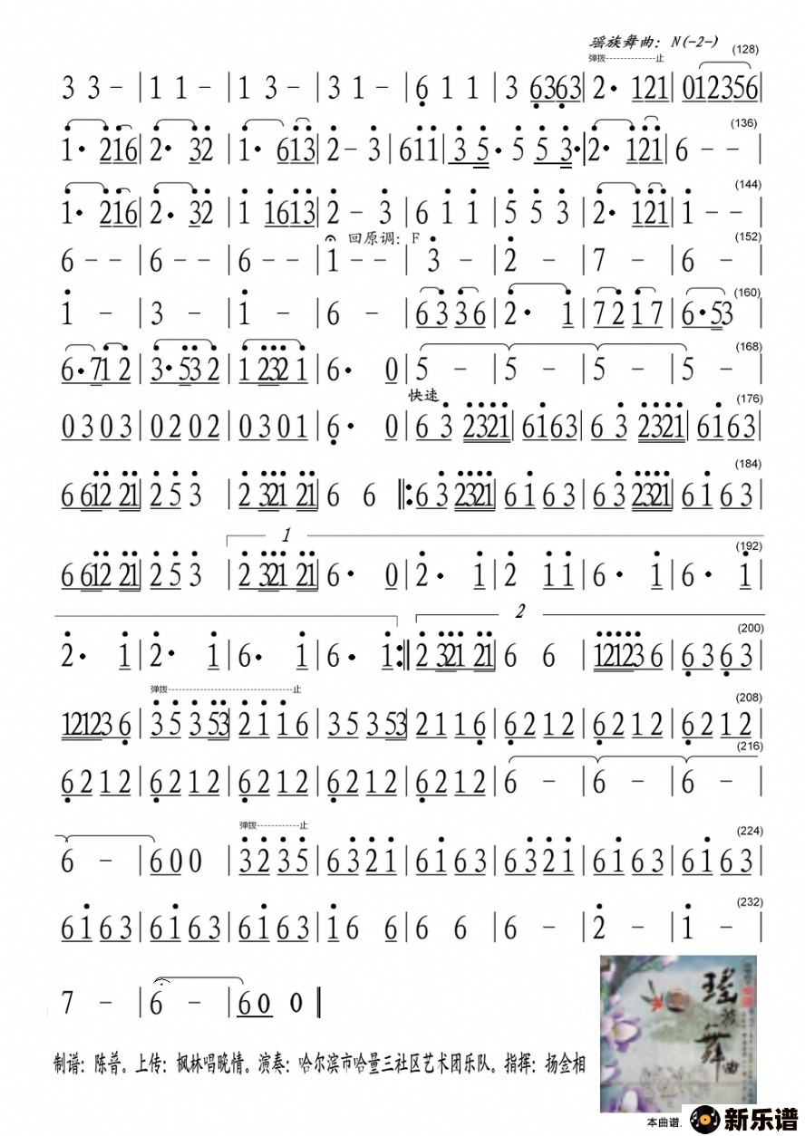《瑶族舞曲》最新曲谱 哈量三社区艺术团乐队。指挥;扬金相