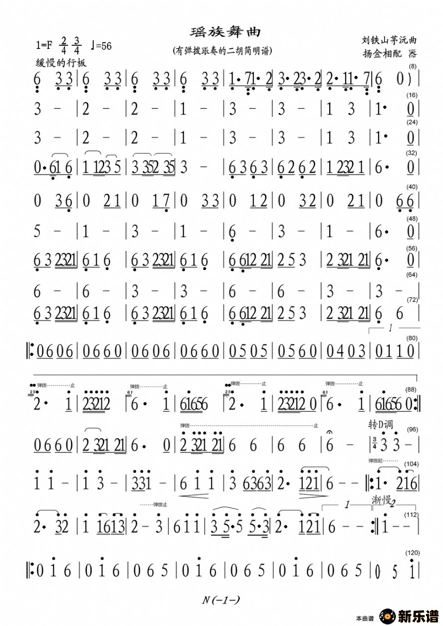 作曲:刘铁山茅沅曲扬金相配器(有弹拨跟奏的二胡简明谱)