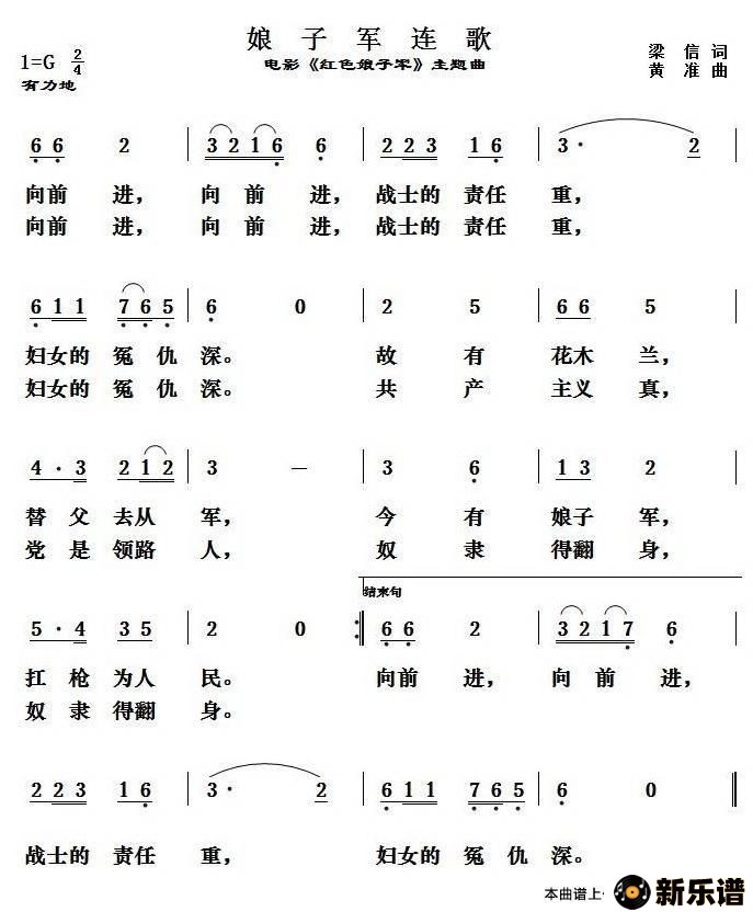 娘子军连歌(电影《红色娘子军》主题歌)最新曲谱