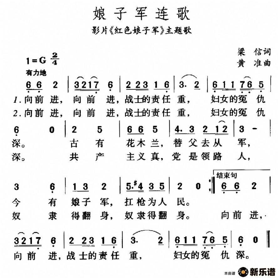 娘子军连歌(电影《红色娘子军》主题曲)最新曲谱