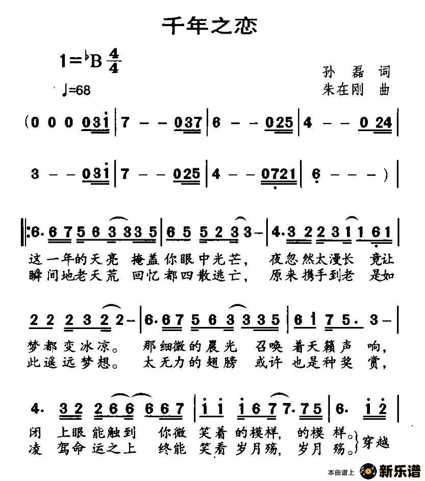 演唱的千年之恋歌词,千年之恋最新曲谱.