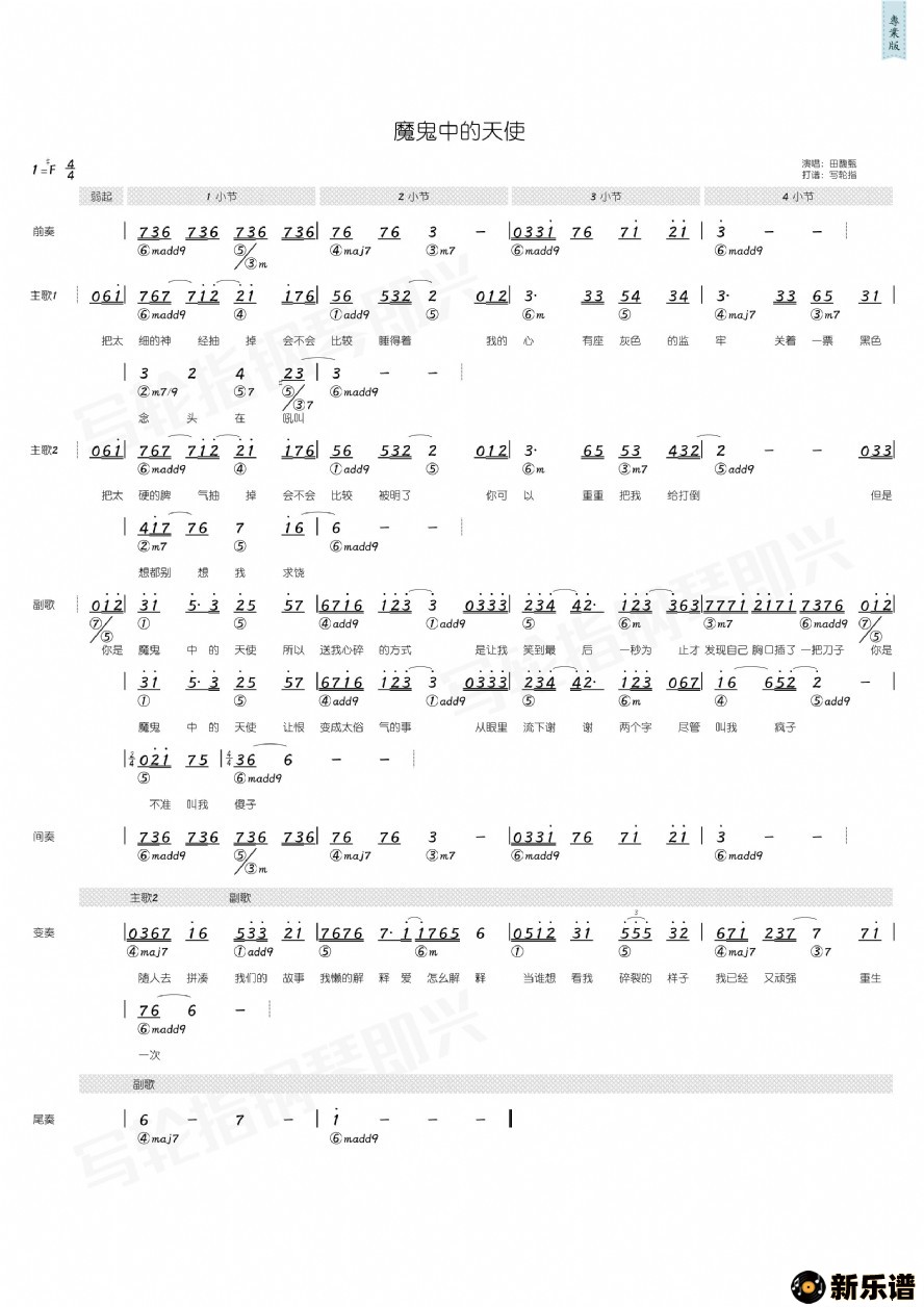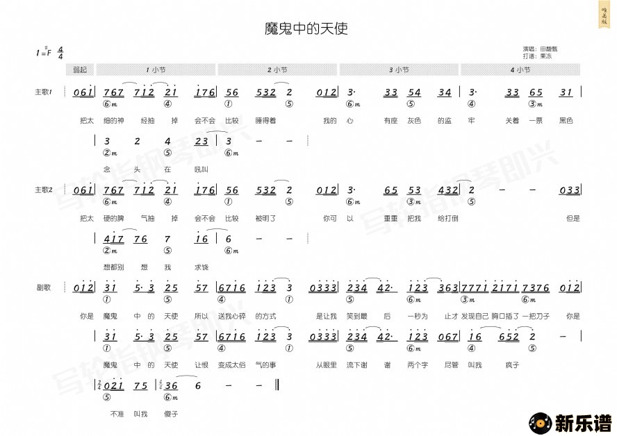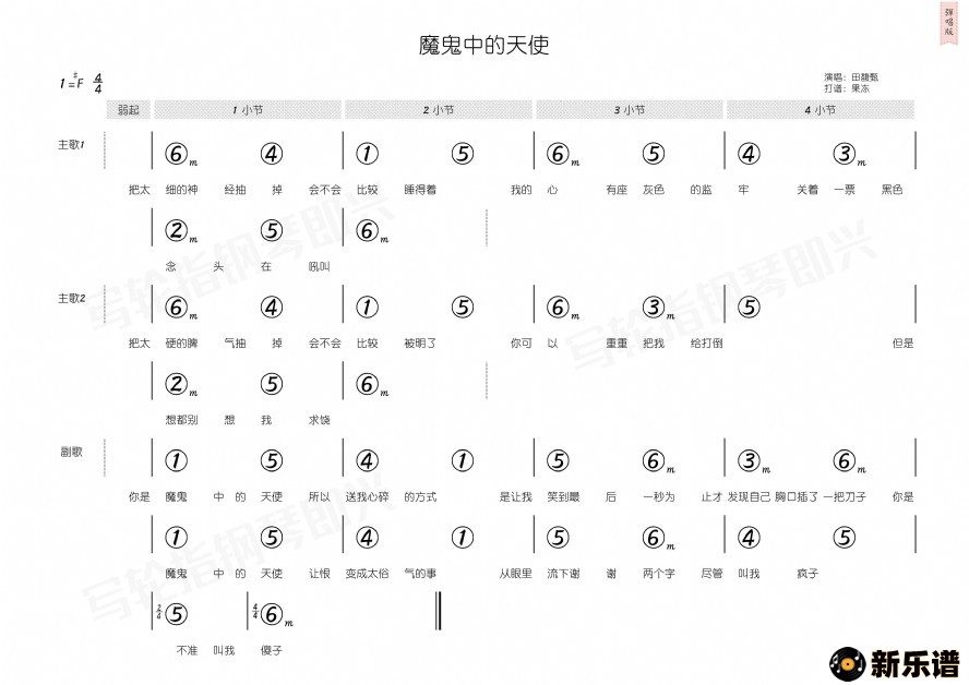 田馥甄演唱的魔鬼中的天使歌词,魔鬼中的天使最新曲谱.