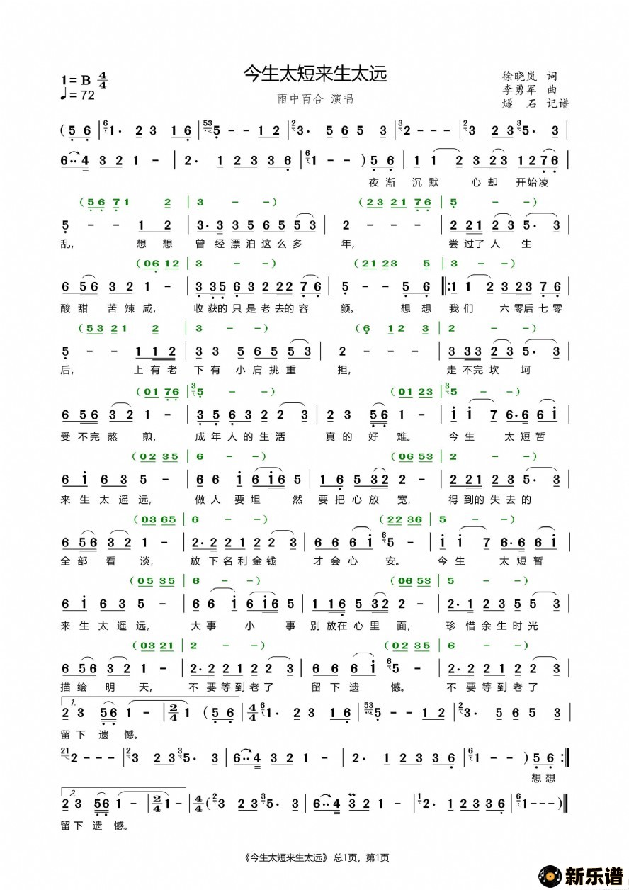 雨中百合演唱的今生太短来生太远歌词,今生太短来生太远最新曲谱.