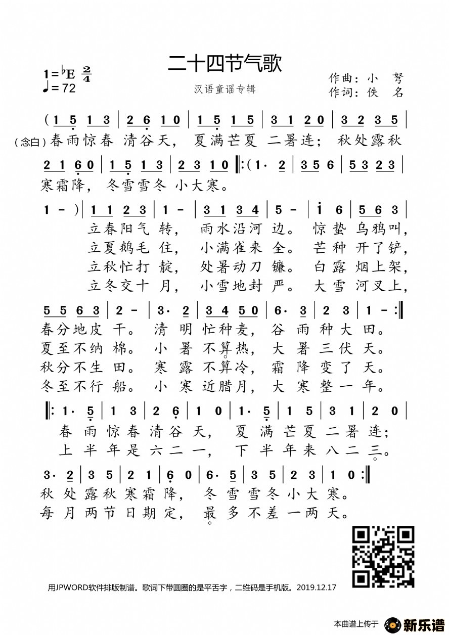 演唱的二十四节气歌歌词,二十四节气歌最新曲谱.