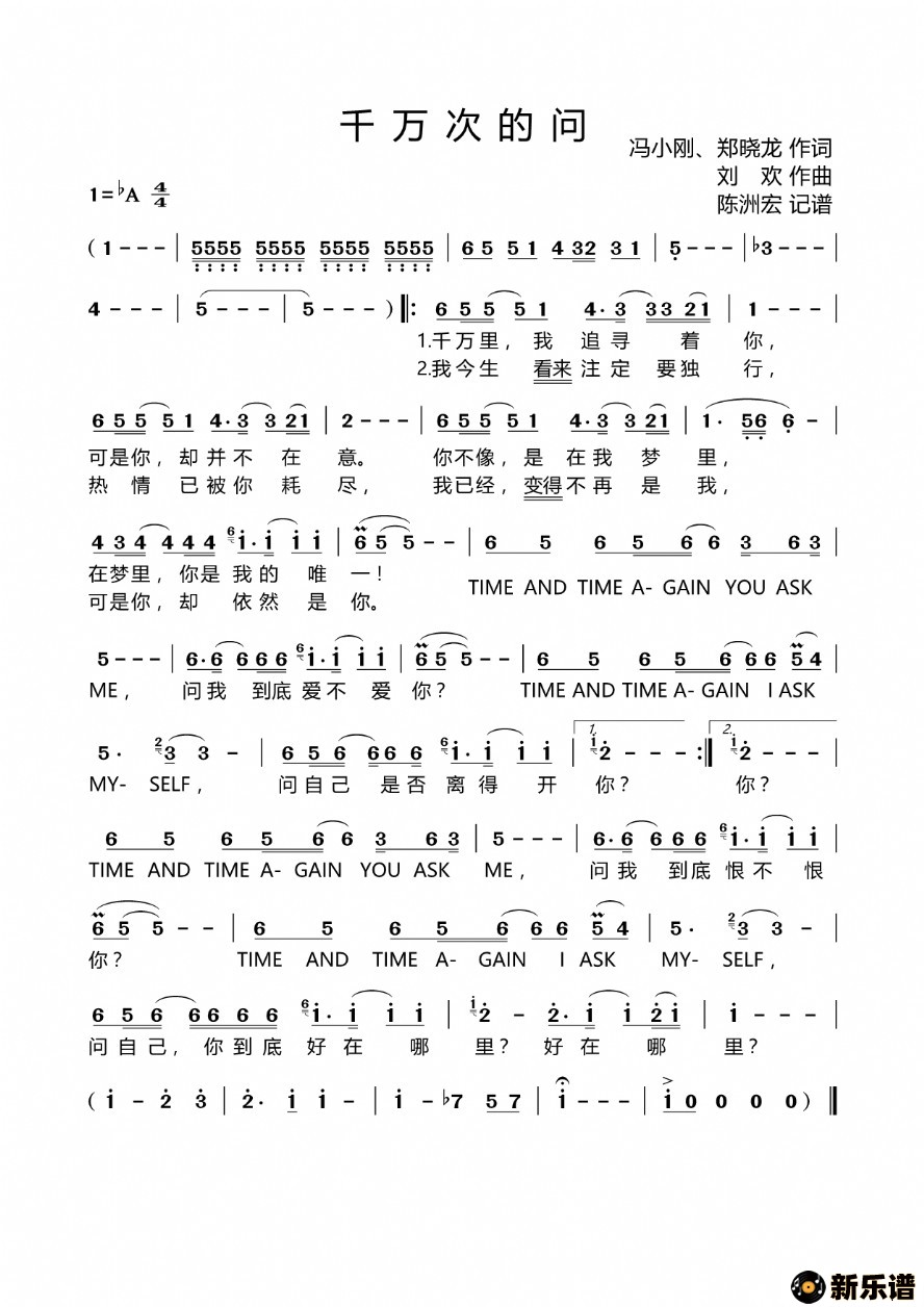 《千万次的问》最新曲谱 刘欢-陈洲宏制谱