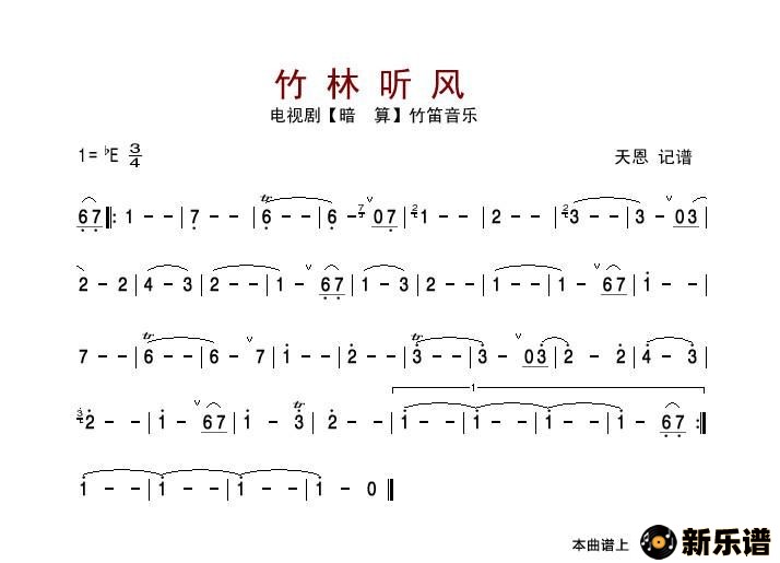 《竹林听风(电视剧《暗算》竹笛音乐)》最新曲谱 -天恩制谱