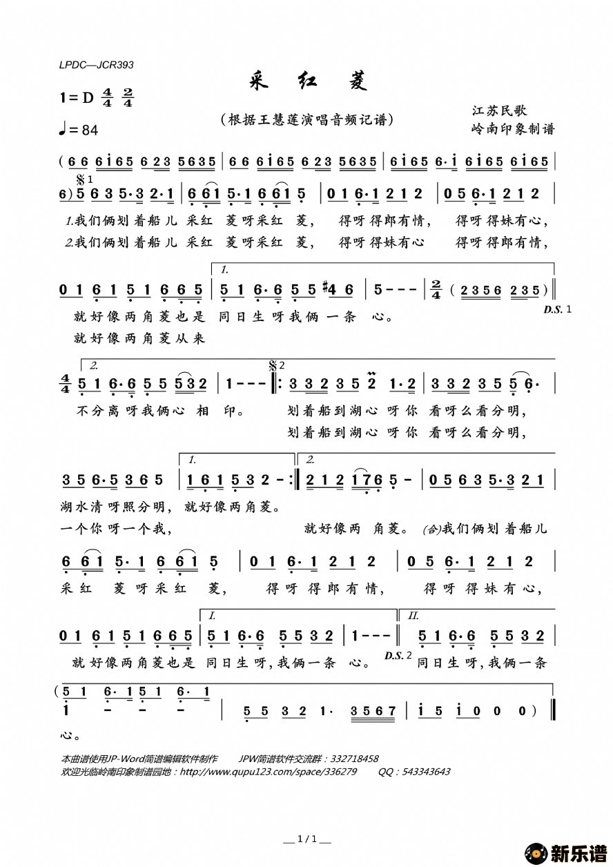 《采红菱》最新曲谱 王慧莲-岭南印象制谱