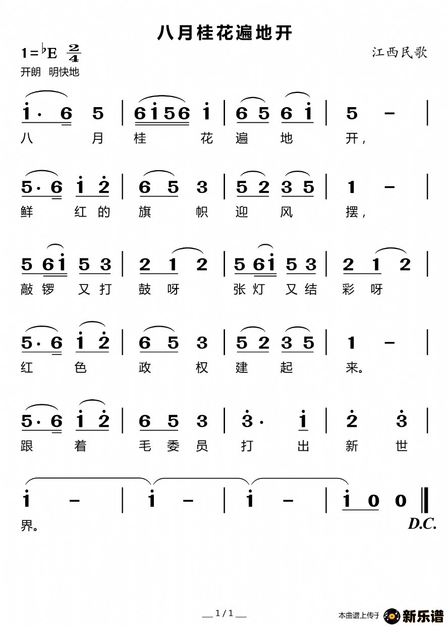 演唱的八月桂花遍地开歌词,八月桂花遍地开最新曲谱.