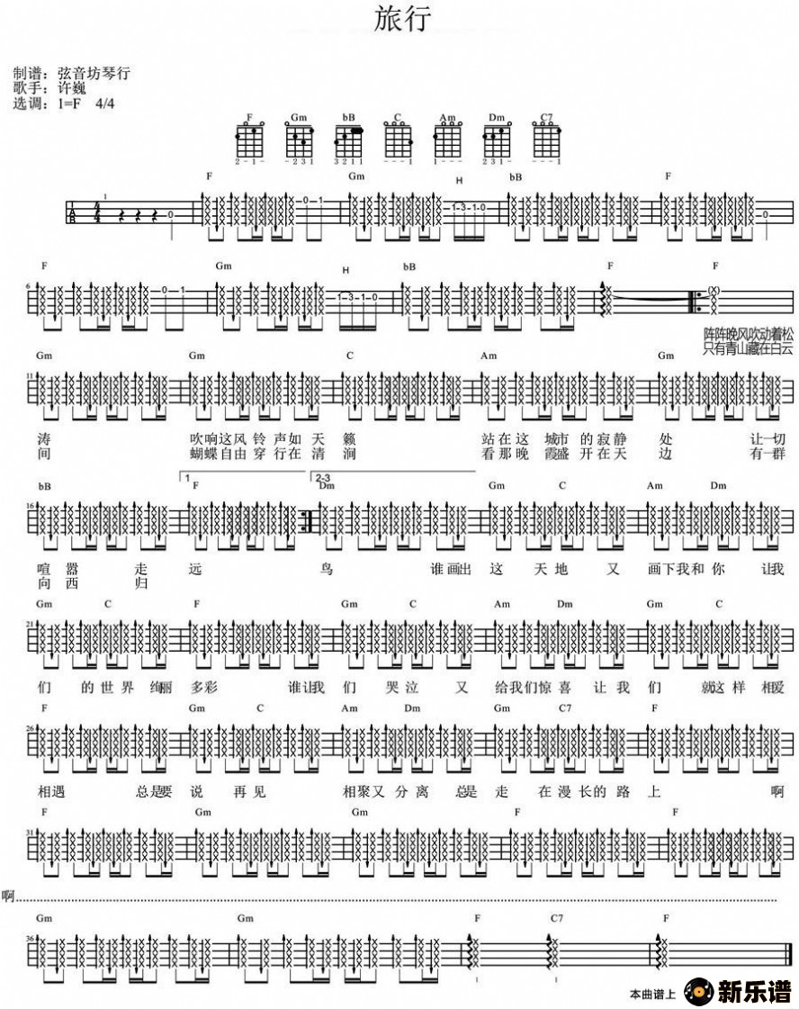 许巍演唱的旅行歌词,旅行最新曲谱.