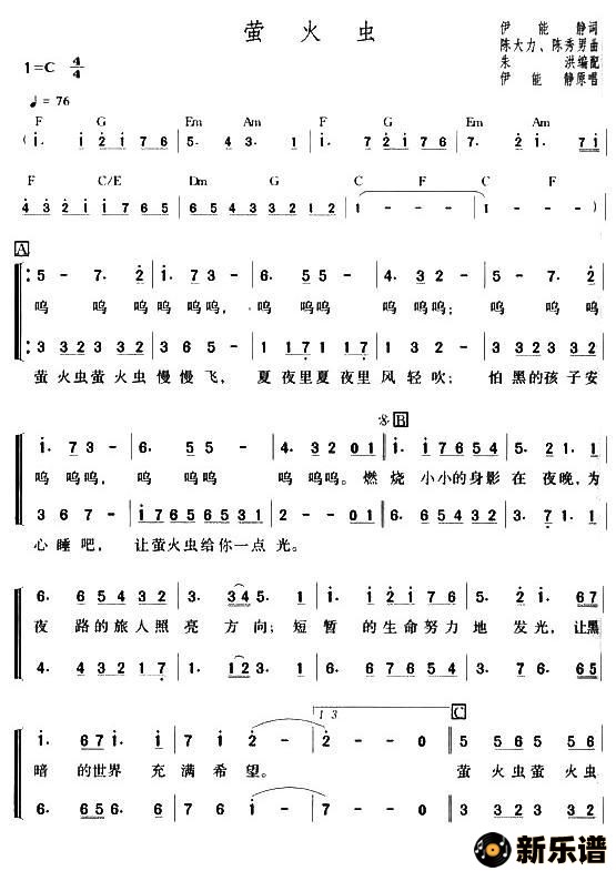 演唱的萤火虫歌词,萤火虫最新曲谱.