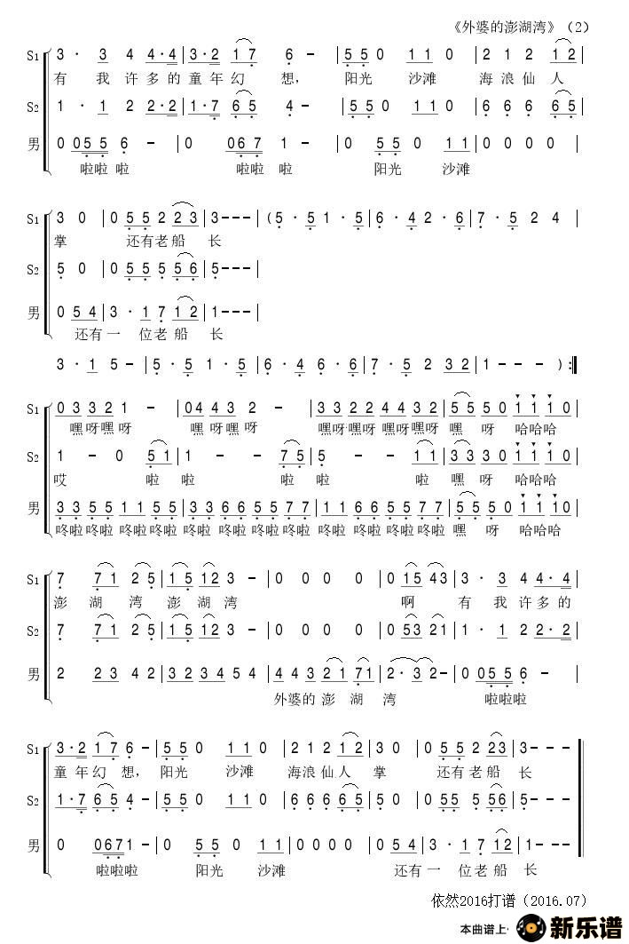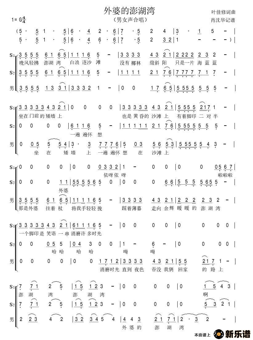 演唱的外婆的澎湖湾歌词,外婆的澎湖湾最新曲谱.
