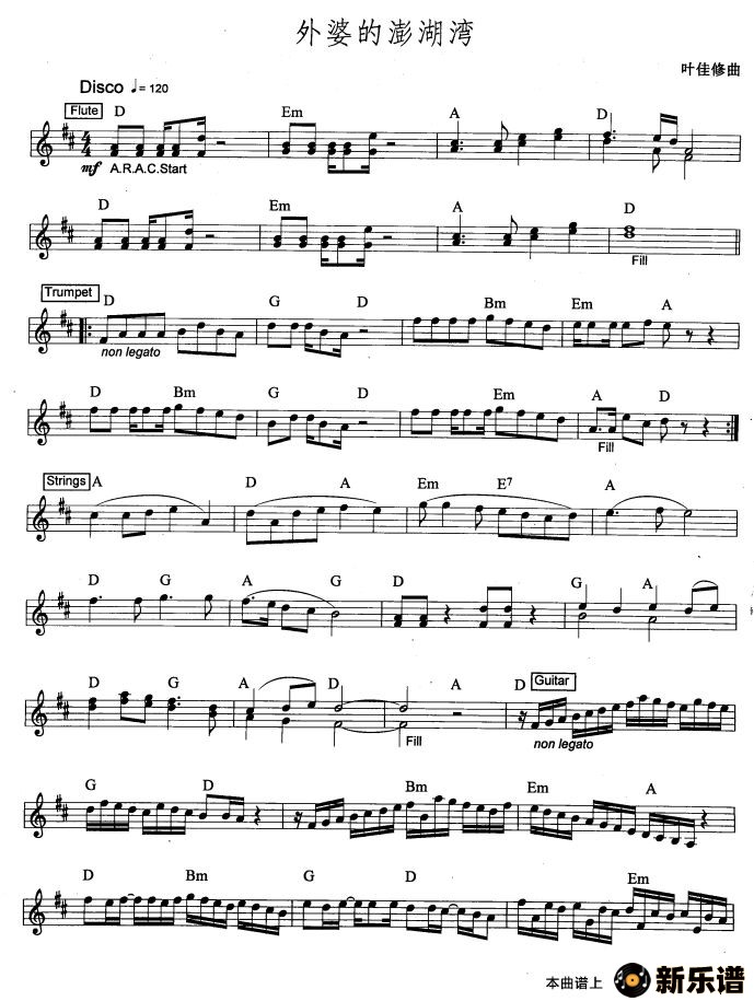 演唱的外婆的澎湖湾歌词,外婆的澎湖湾最新曲谱.