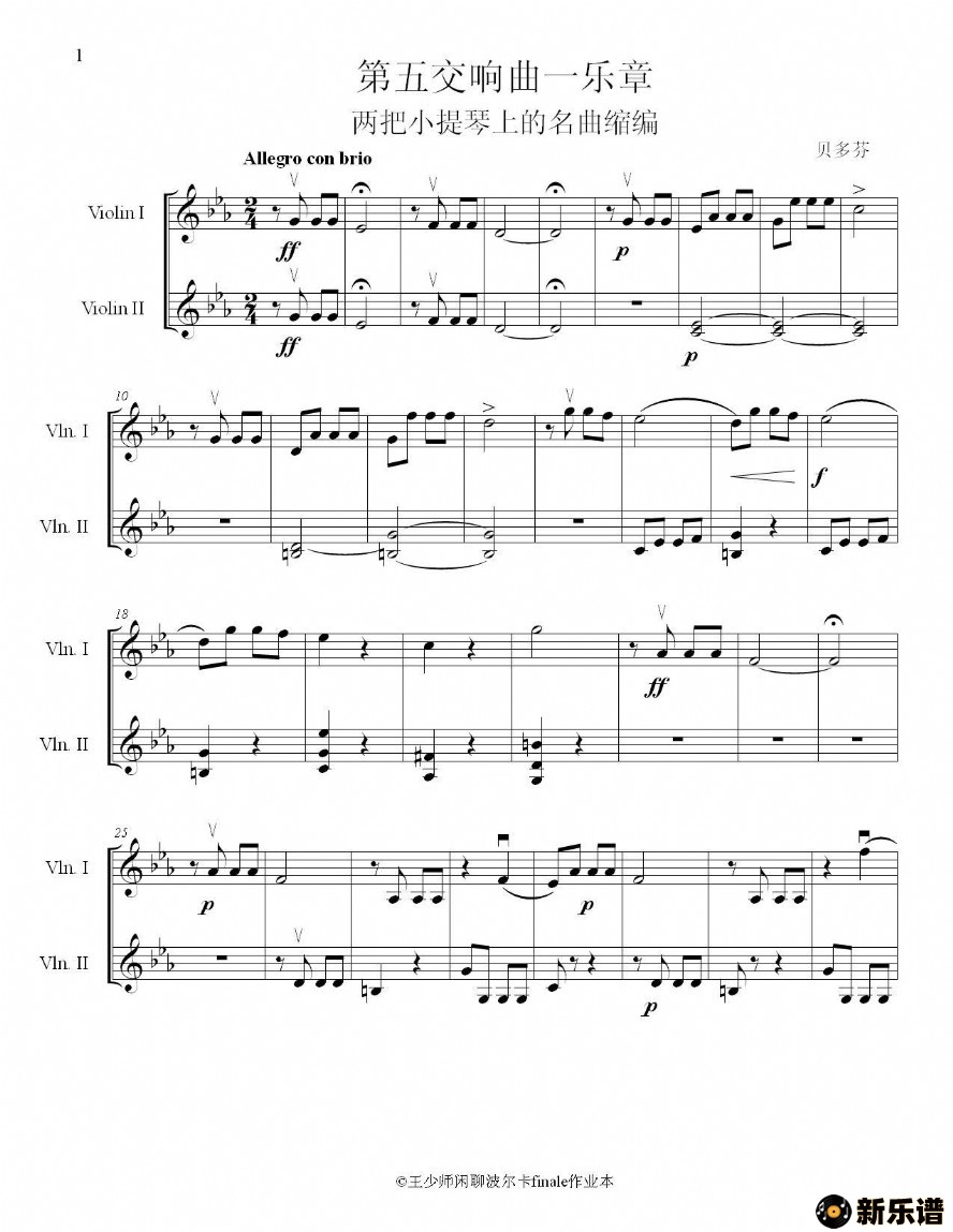 作曲:贝多芬 少师缩编(为两把小提琴的名曲缩编)