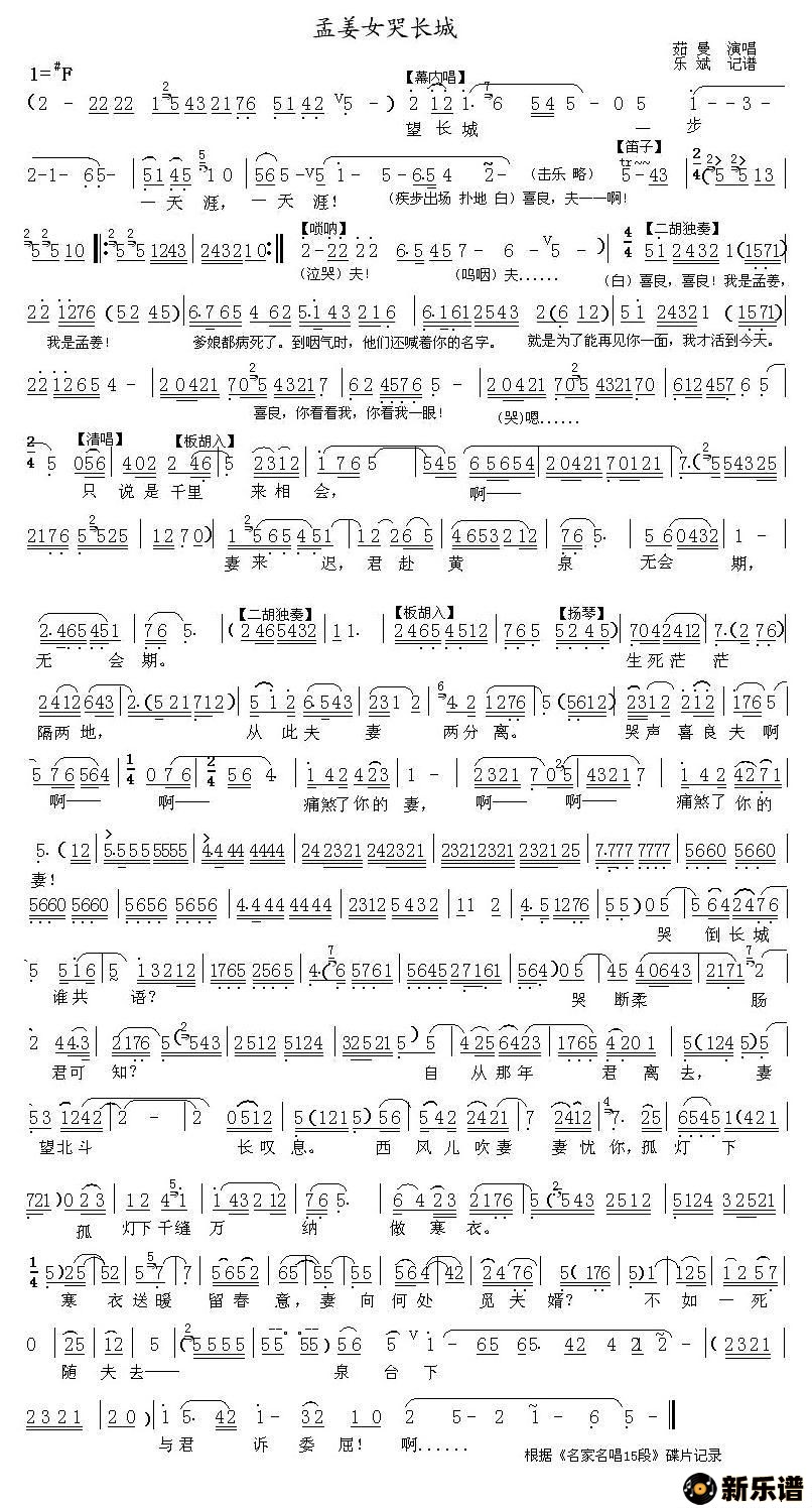 茹曼演唱的【秦腔】孟姜女哭长城歌词,【秦腔】孟姜女哭长城最新曲谱.