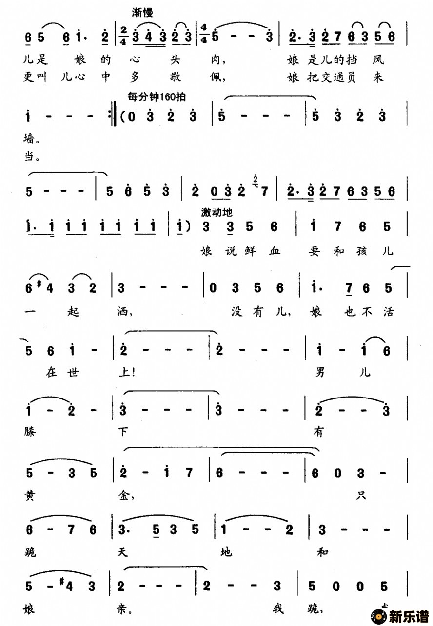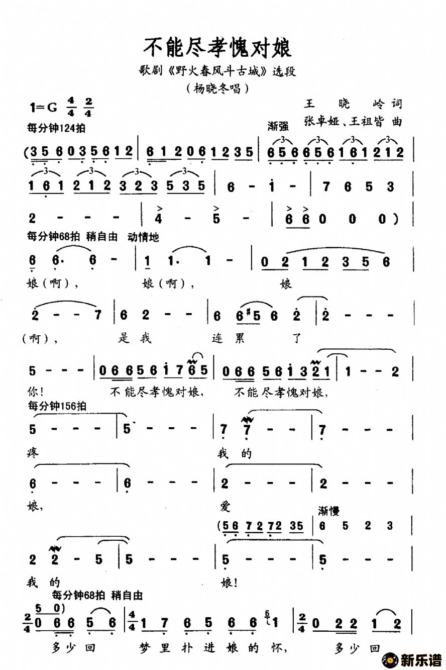 不能尽孝愧对娘/ 野火春风斗古城 相关曲谱