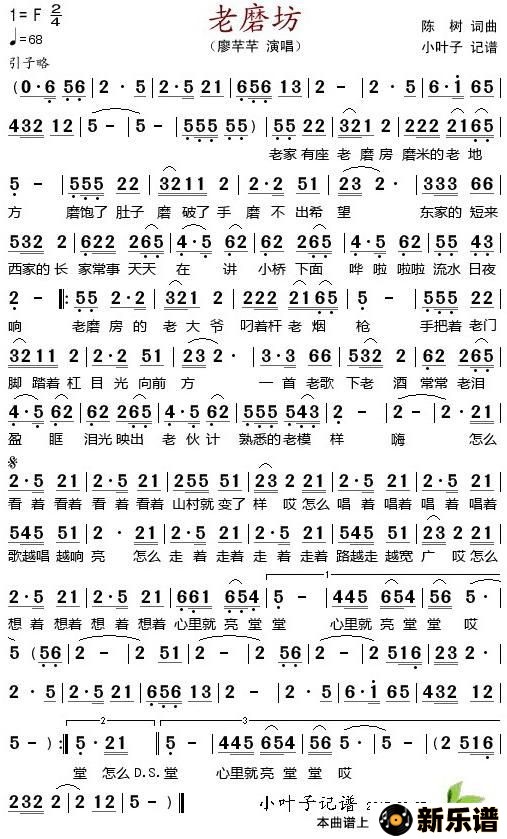 廖芊芊演唱的老磨坊歌词,老磨坊最新曲谱.