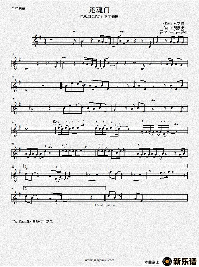 《还魂门(电视剧《老九门》主题曲)》最新曲谱 胡彦斌