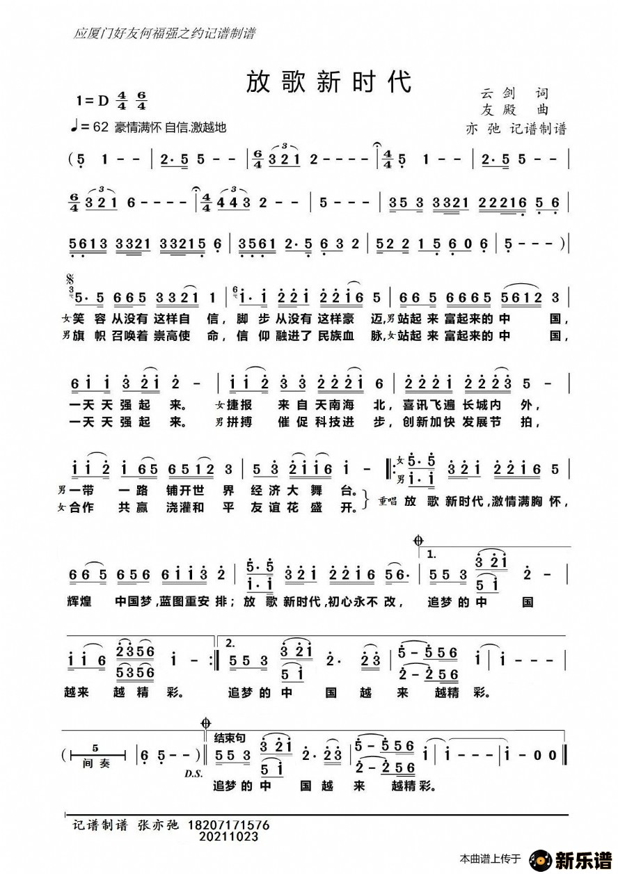 《放歌新时代》最新曲谱 张友殿/伊泓远