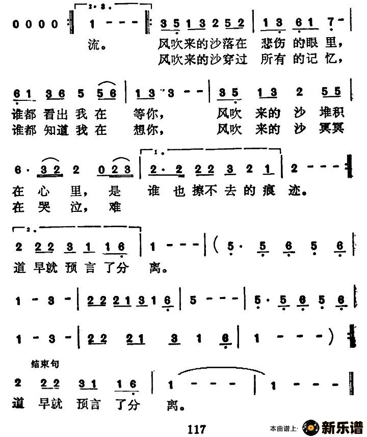 哭沙最新曲谱