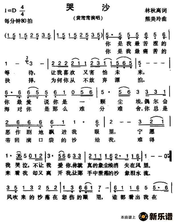 《哭沙》最新曲谱 黄莺莺