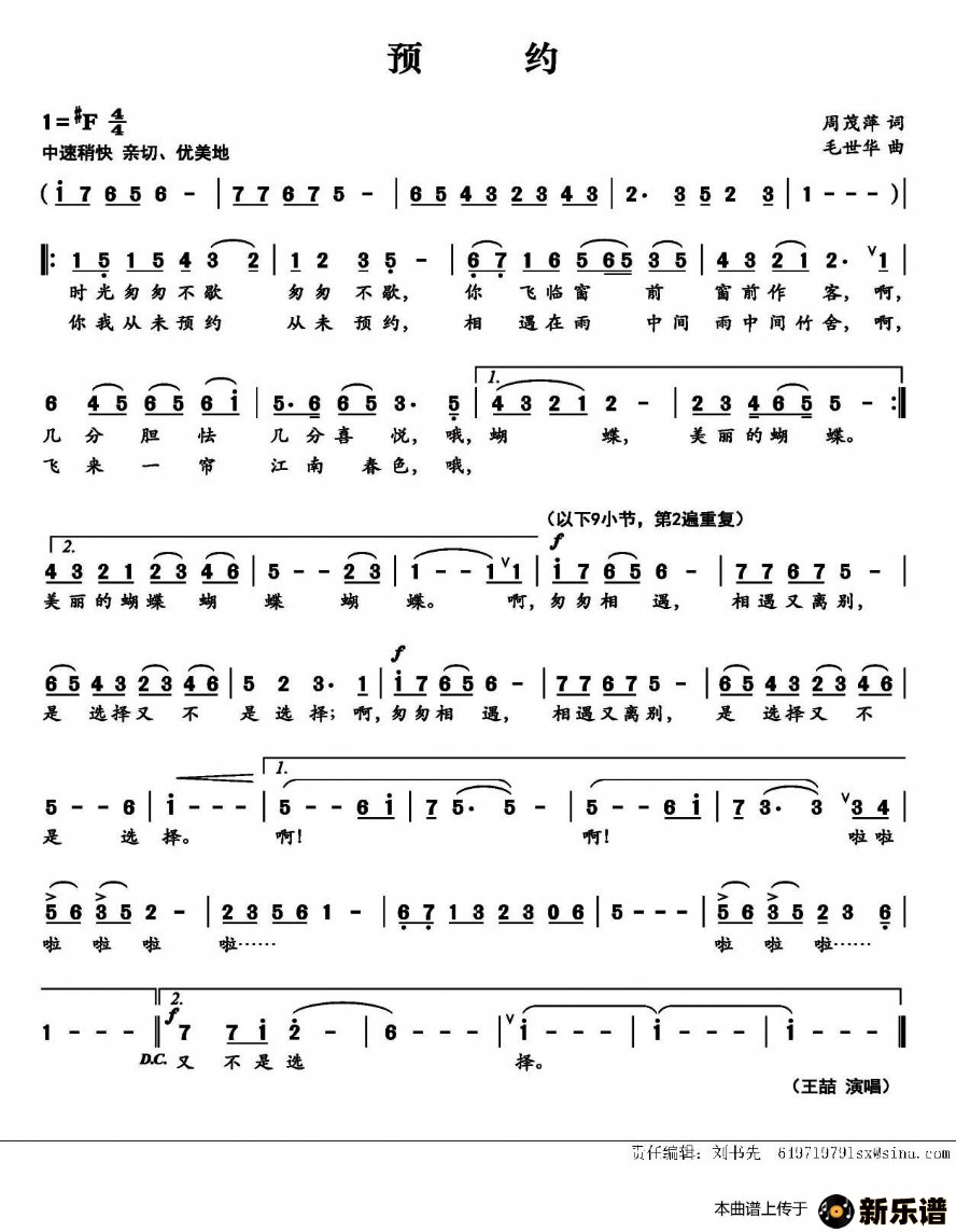 预约/王喆 相关曲谱