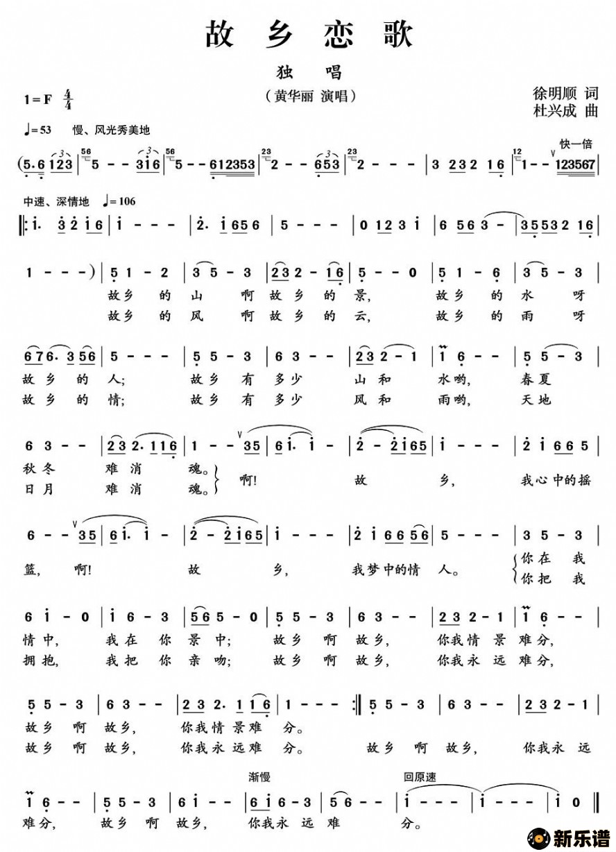 黄华丽演唱的故乡恋歌歌词,故乡恋歌最新曲谱.