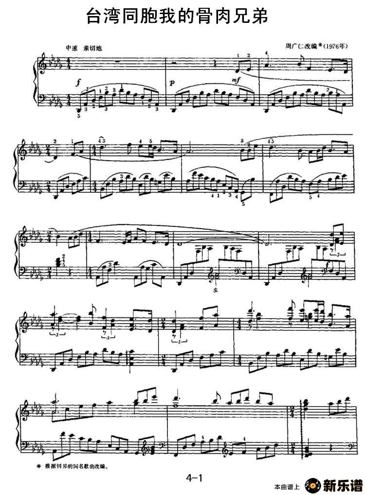 《台湾同胞我的骨肉兄弟》最新曲谱