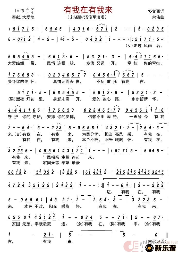 宋晓静/汤俊军演唱的有我在有我来 歌词,有我在有我来 最新曲谱.