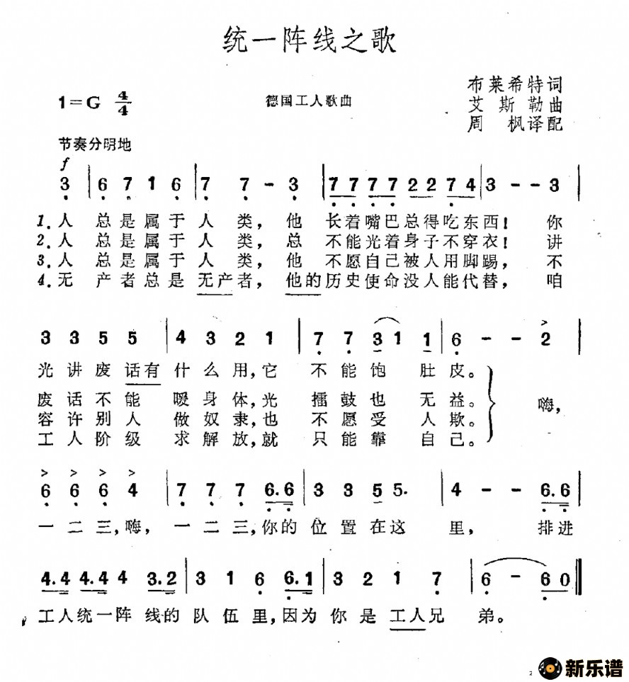 演唱的【德】统一阵线之歌歌词,【德】统一阵线之歌最新曲谱.
